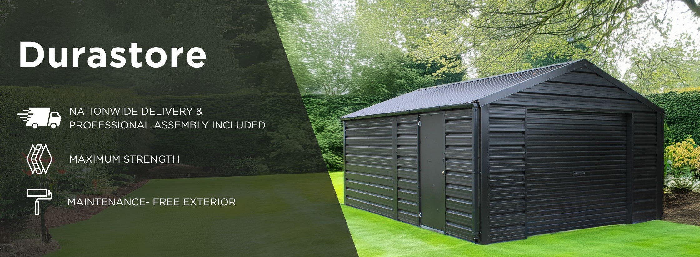 Our maintenance free Durastore Steel sheds and garages are designed and constructed with the most extreme conditions in mind boasting a build quality and strength superior to any other building of this type so it can stand up to the harshest conditions.
